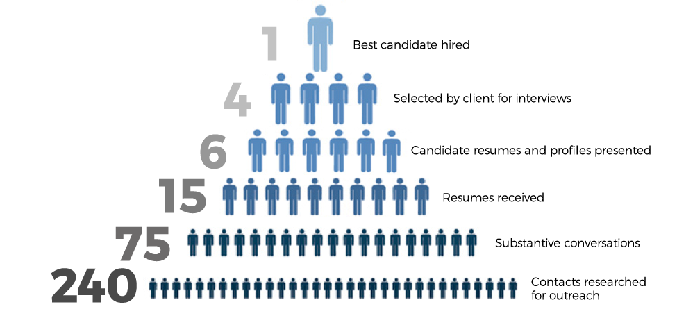 The Company takes a tenacious, disciplined, thorough approach to the search process. Extensive time is spent with clients and candidates to build strong, long term relationships. In-depth, comprehensive evaluations enable the best candidates to earn top consideration. Persistent effort ensures successful completion of the search. The end result is a finalist who is both qualified and highly motivated to meet every challenge for the client organization.